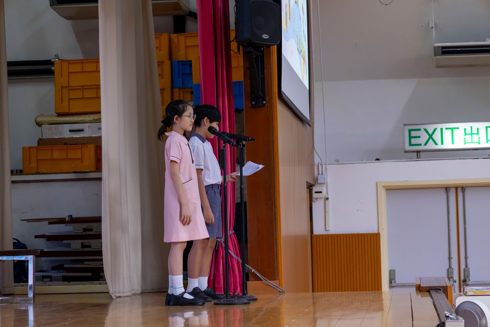 敬師節早會活動 2023/09/15 今學年的敬師節早會在2023年9月15日舉行,兩位小主持代表全校同學向師長表達謝意,並邀請校長及家教會副主席分享感言,即場邀請同學讀出敬師卡表達謝意。家長代表贈送水果籃給老師以表謝意。最校全校歌唱良師頌,整個早會洋溢一片溫馨的氣氛。